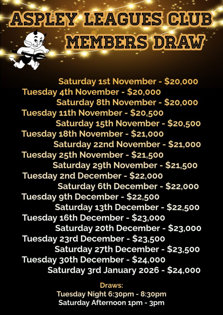 The Membership Draw prize will commence $20,000 and jackpots $500 every Tuesday if the draw is not won.